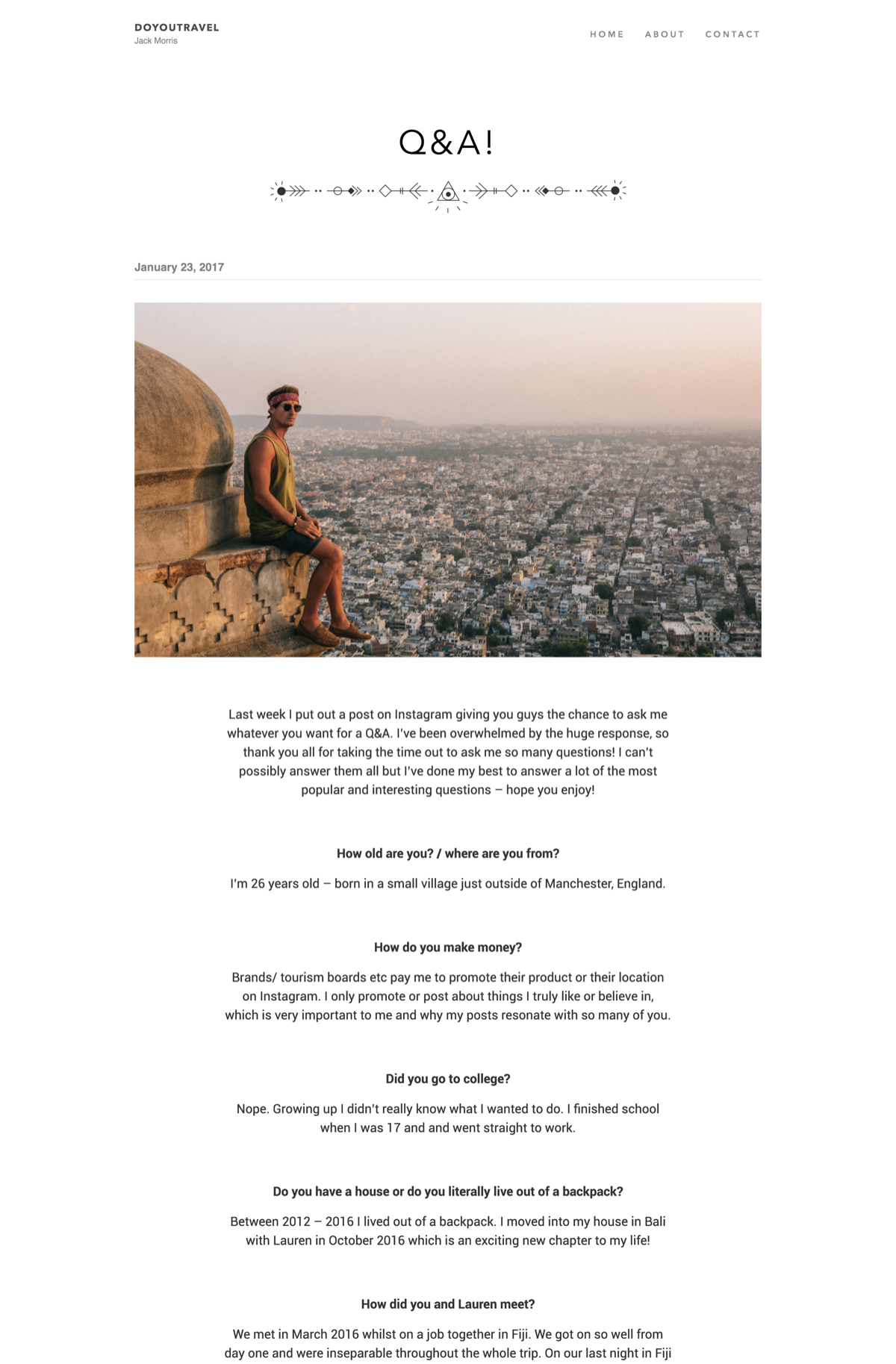 Website redesign for Jack Morris, Instagram influencer with 1.8M followers.
